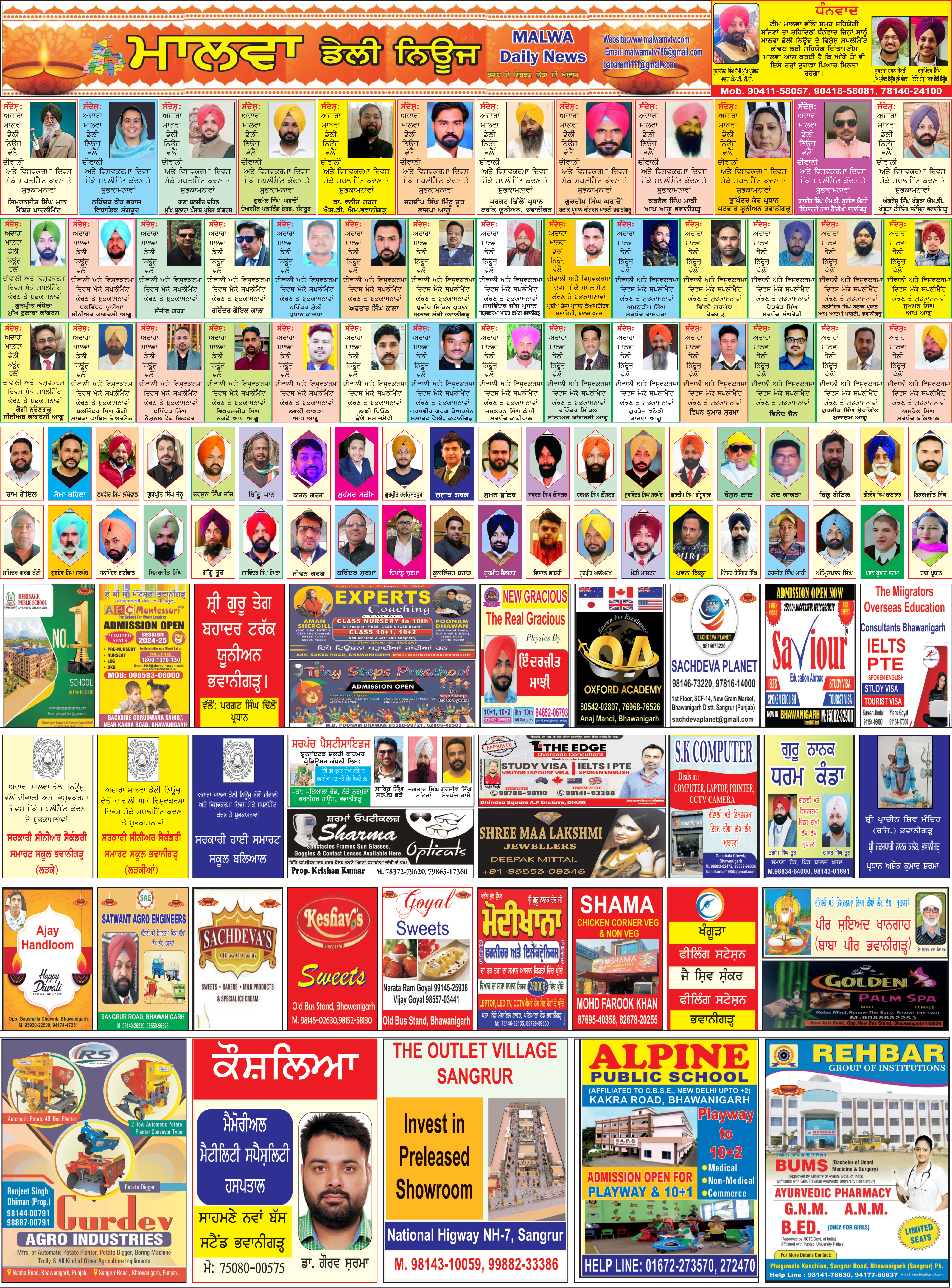 ਮਾਲਵਾ ਐਮ ਵੀ ਟੀਵੀ ਅਤੇ ਮਾਲਵਾ ਡੇਲੀ ਨਿਊਜ਼ ਵਲੋਂ ਵਿਸਾਖੀ ਦੇ ਸੁਭ ਦਿਹਾੜੇ ਤੇ ਭਵਾਨੀਗੜ ਤੋਂ ਵਿਸ਼ੇਸ ਸਪਲੀਮੈਂਟ